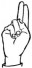 На ћирилици написано БОРИСАВА ПОПОВ састоји се из 13 слова [?]. Исписано ћириличном једноручном азбуком за глувонеме: